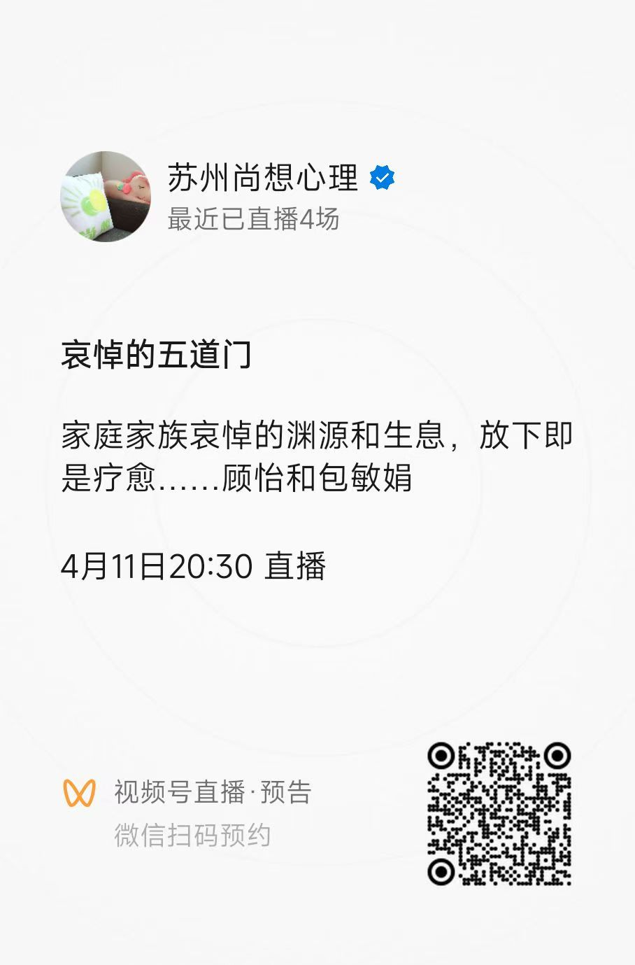 【概要描述】今日探讨心理主题:哀悼的五道门 家庭家族哀悼的渊源和生息,放下即是疗愈.....顾怡和包敏娟 4月11日20:30 直播